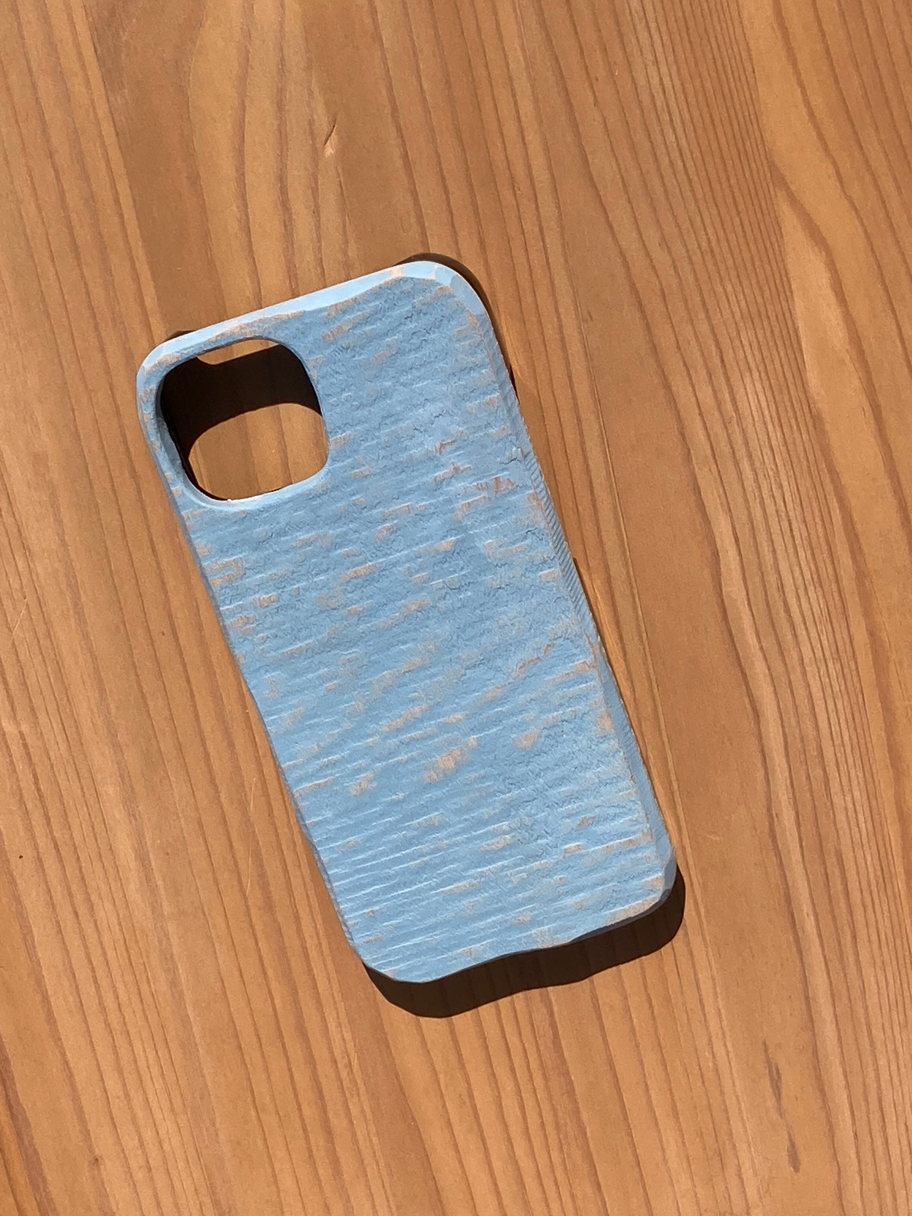 木製のiPhone15ケース、空色が夏の爽やかさを演出。優しい印象のアルダー材を使用し、エイジング加工でアンティーク風で風合い豊かな仕上がりになっています。さらに、環境に優しい石鹸を原料にした塗装で、安心してお使いいただけます。この木製ケースがあなたのスマホを優しく包み込み、夏の雰囲気を演出します。世界に一つだけの個性的なiPhone15を手に入れて、周囲の視線を引きつけましょう。
