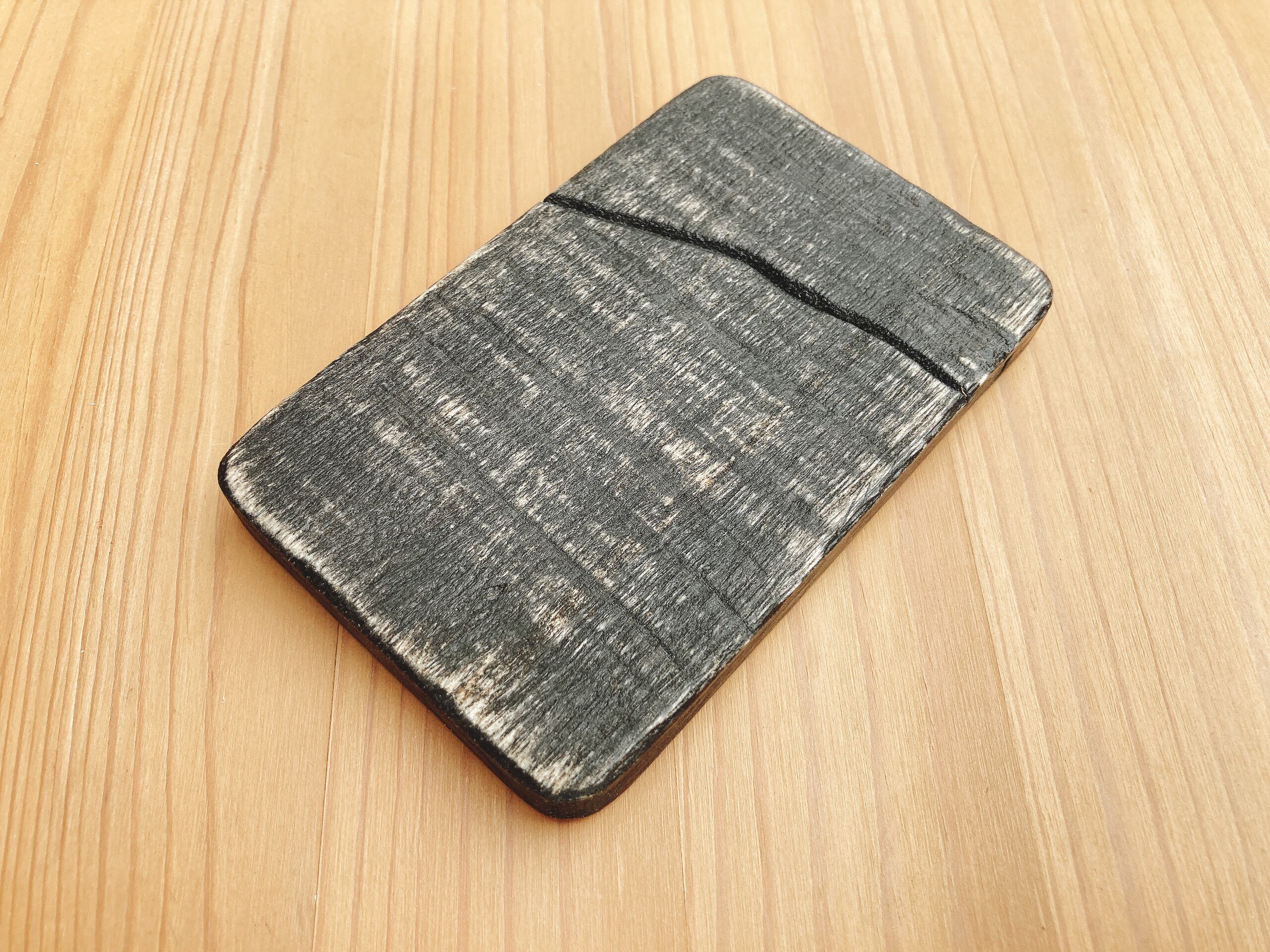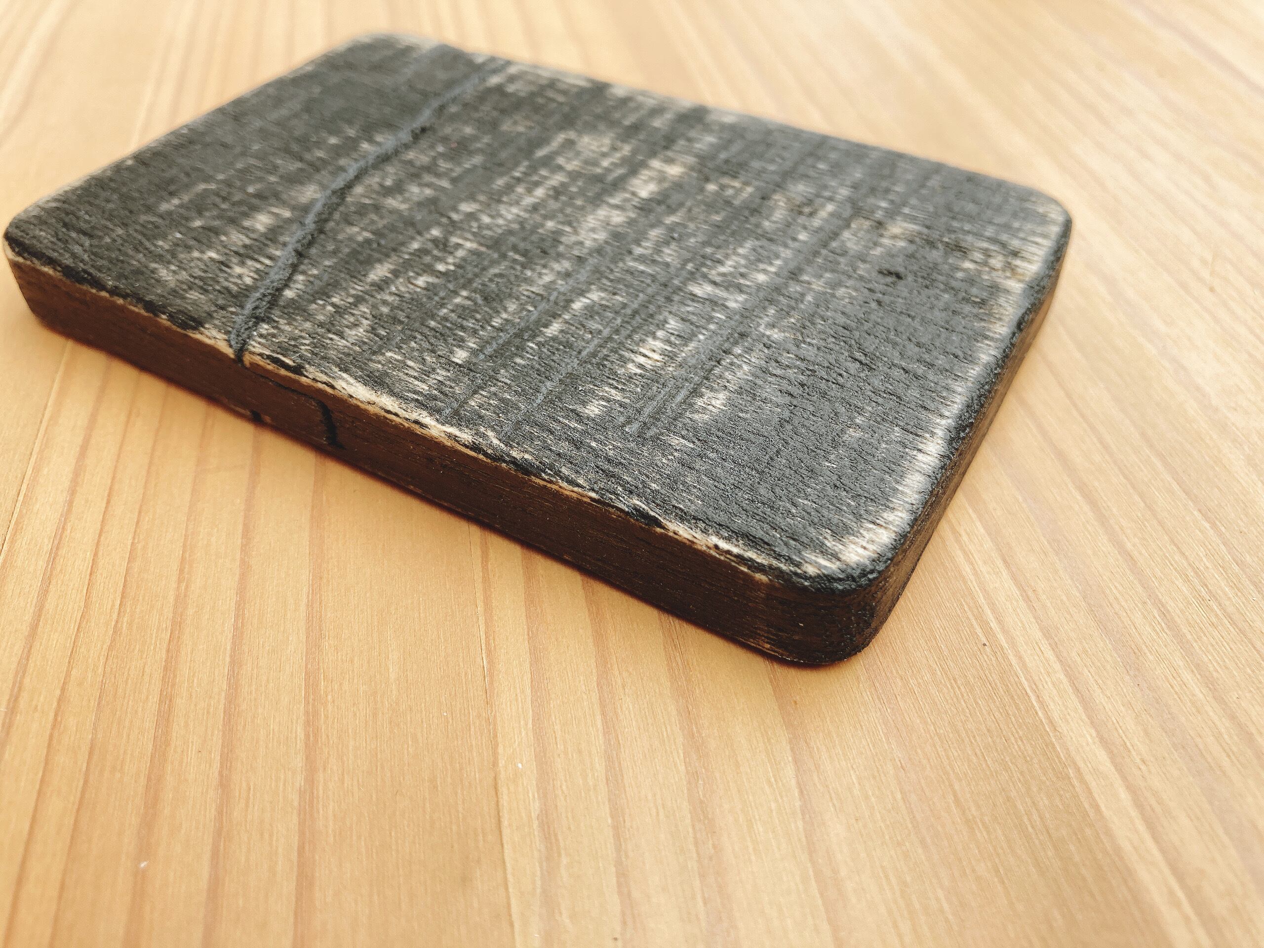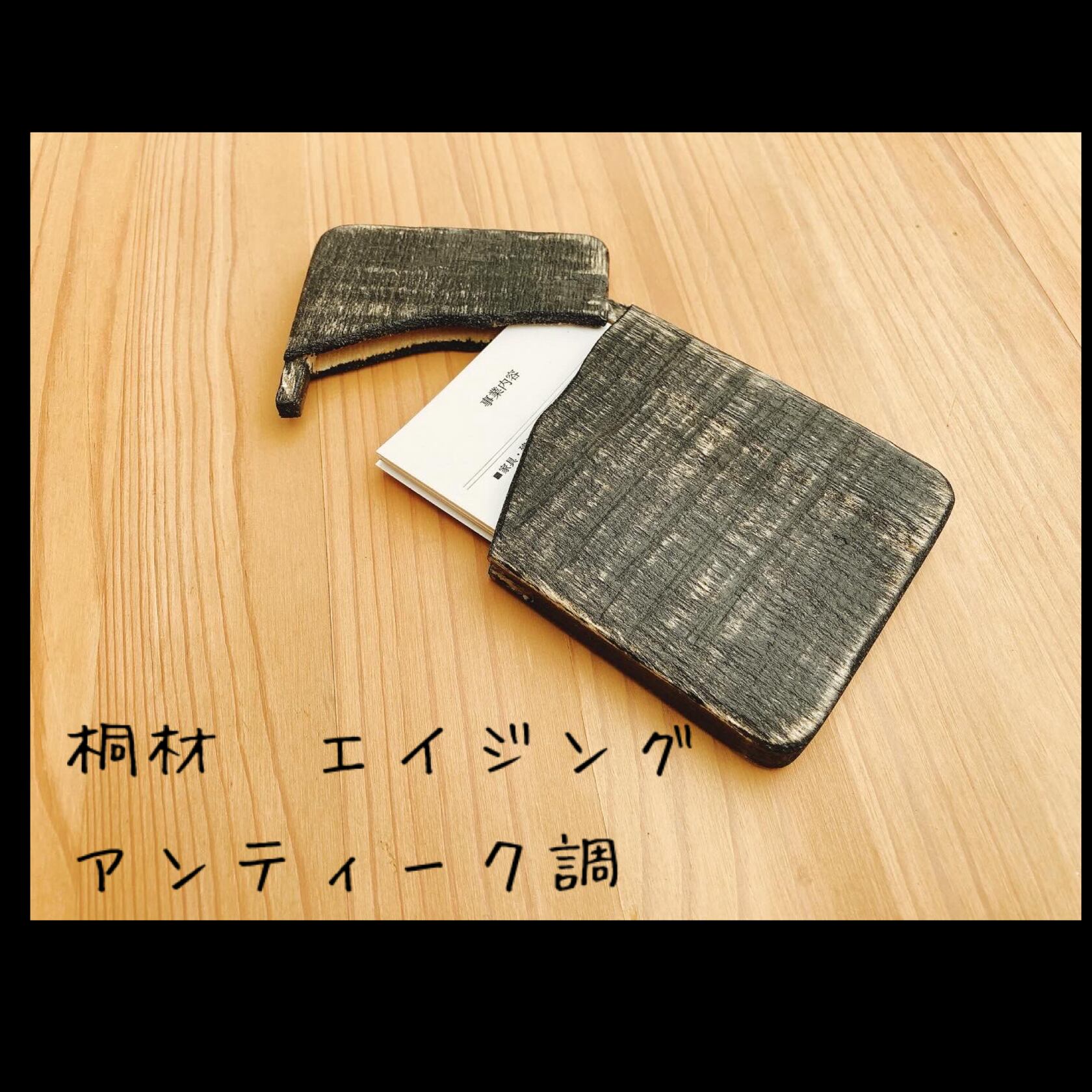 桐材を使用した名刺入れオールドブラック色、アンティーク風にエイジング加工を施しました。大人の男性にぴったりの高級感漂うデザインで、ビジネスシーンでもカジュアルな場面でも活躍します。名刺をスマートに収納できる便利な仕様に加えて、手触りや風合いも楽しめる逸品です。