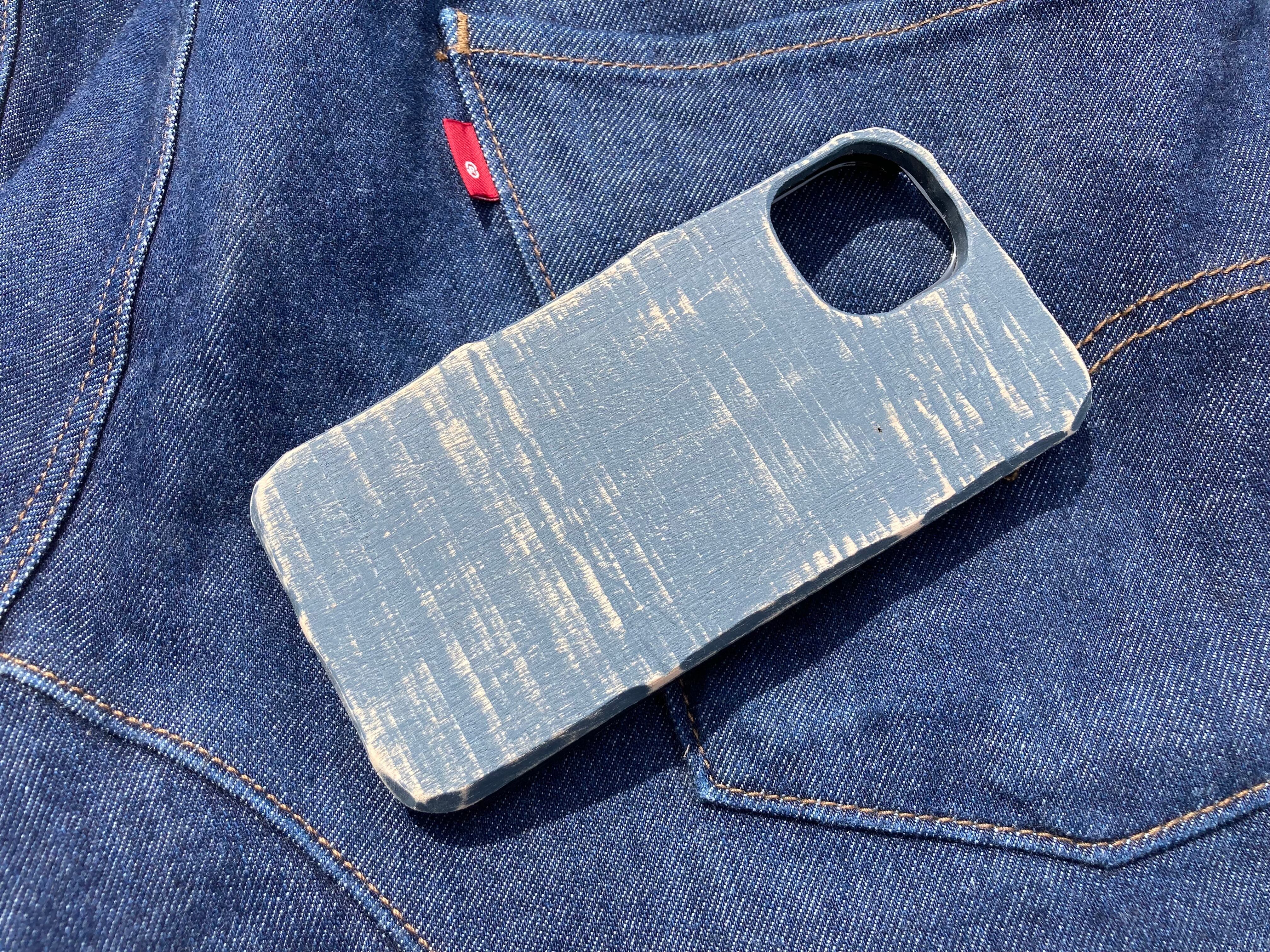 iPhone15ケース 木製 インディゴブルー エイジング仕上げ