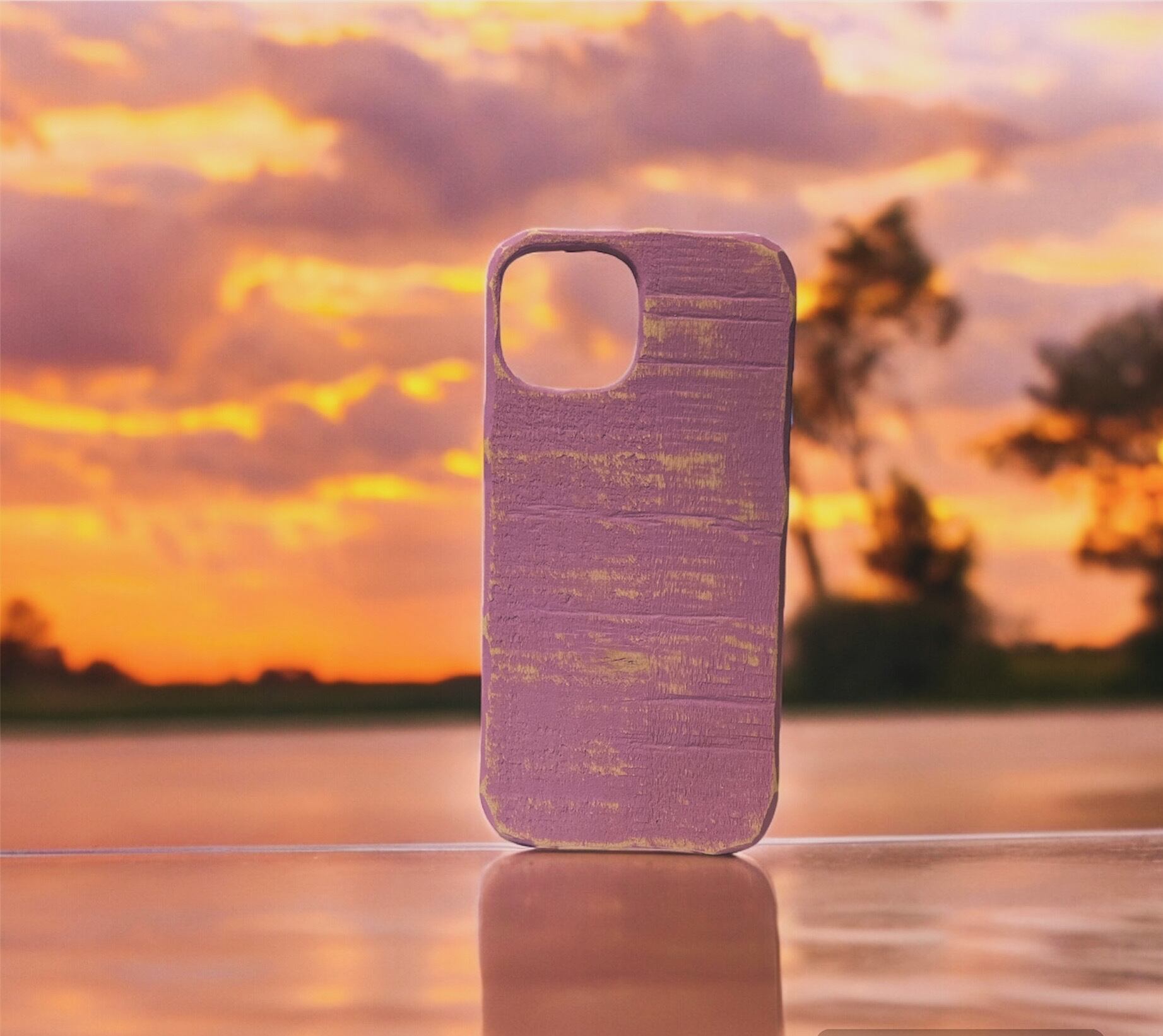 iPhone15ケース 木製サンセットパープル